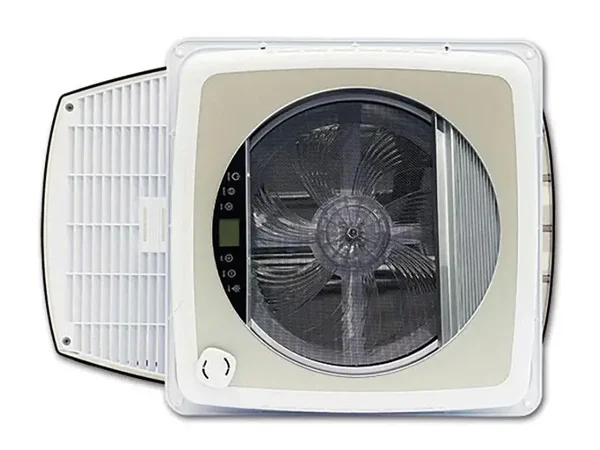 De dakventilator is voorzien van muggengaas, een verduisterend plissé en LED verlichting in het onderkader.